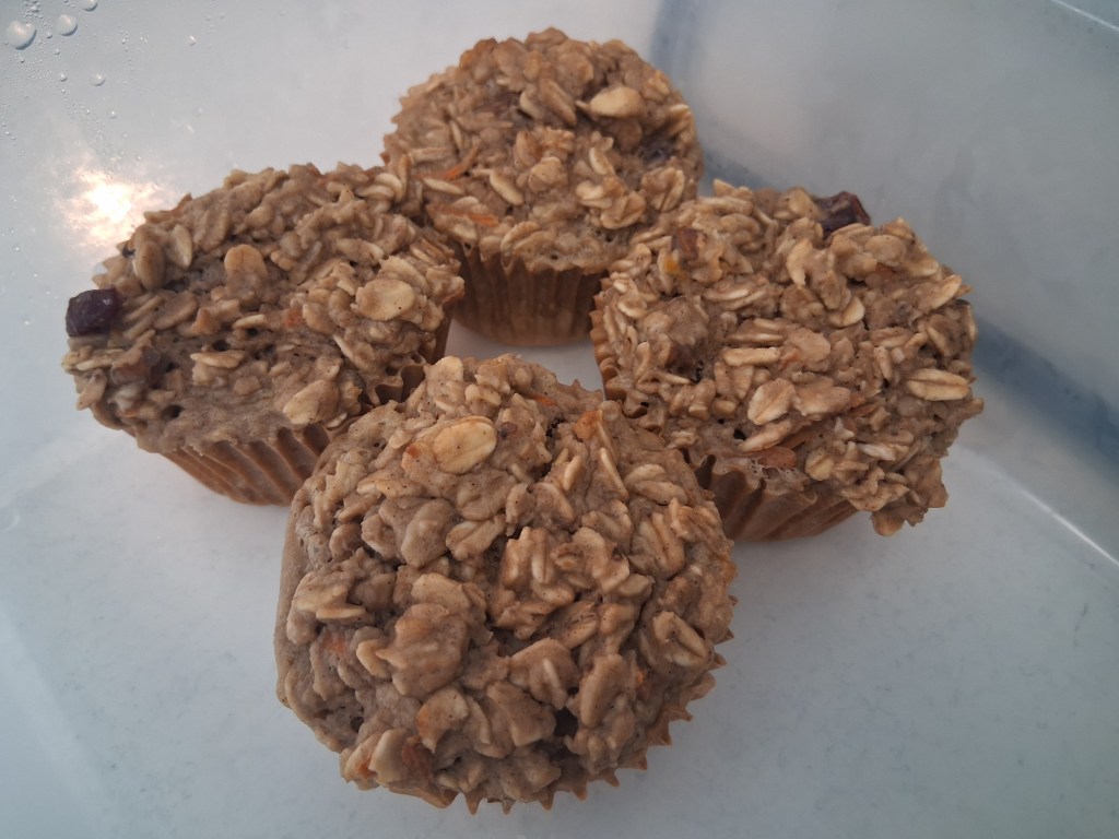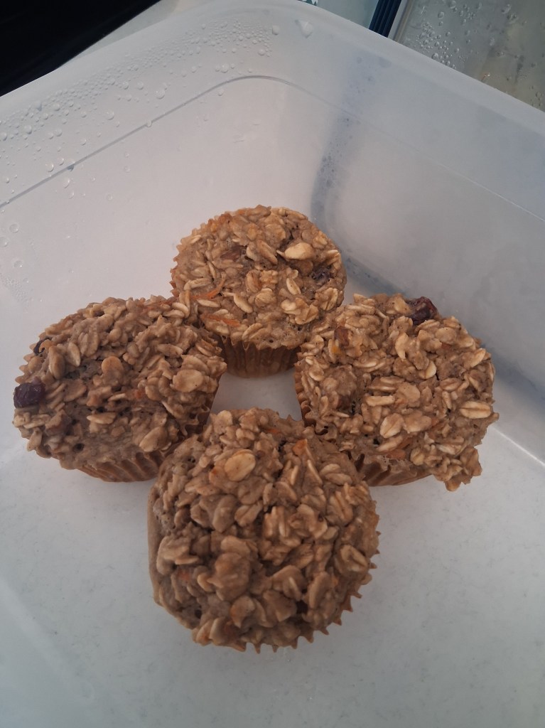 Ingredients: 3 Bananas (blended), 2 Eggs, 2 Carrots (medium sized, grated), GF Oatmeal (3-4 cups ‘eyeballed’), Milk (1.5 Cups), Monkfruit Sweetner (Sugar works as well of any sweetner of choice), Oil (2 Tbsps), Walnuts (1/4 Cup), Cranberries (1/4 Cup), Baking Powder (2 Tbsp’s).