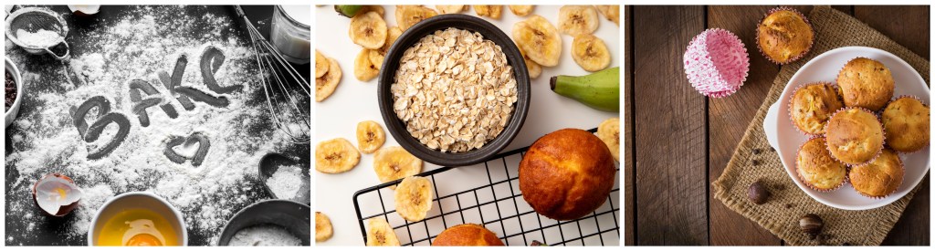 For easy-to-make breakfast bites, I’m opting for fruit options, homemade yoghurt parfaits (Yes, I said homemade), and baked goods with ingredients I can count on both hands. I was rummaging through my pantry and opted to make GF Banana Oatmeal muffins with a twist. The prep takes about 30 minutes, while this bakes for another 30 minutes in a 350 F oven.