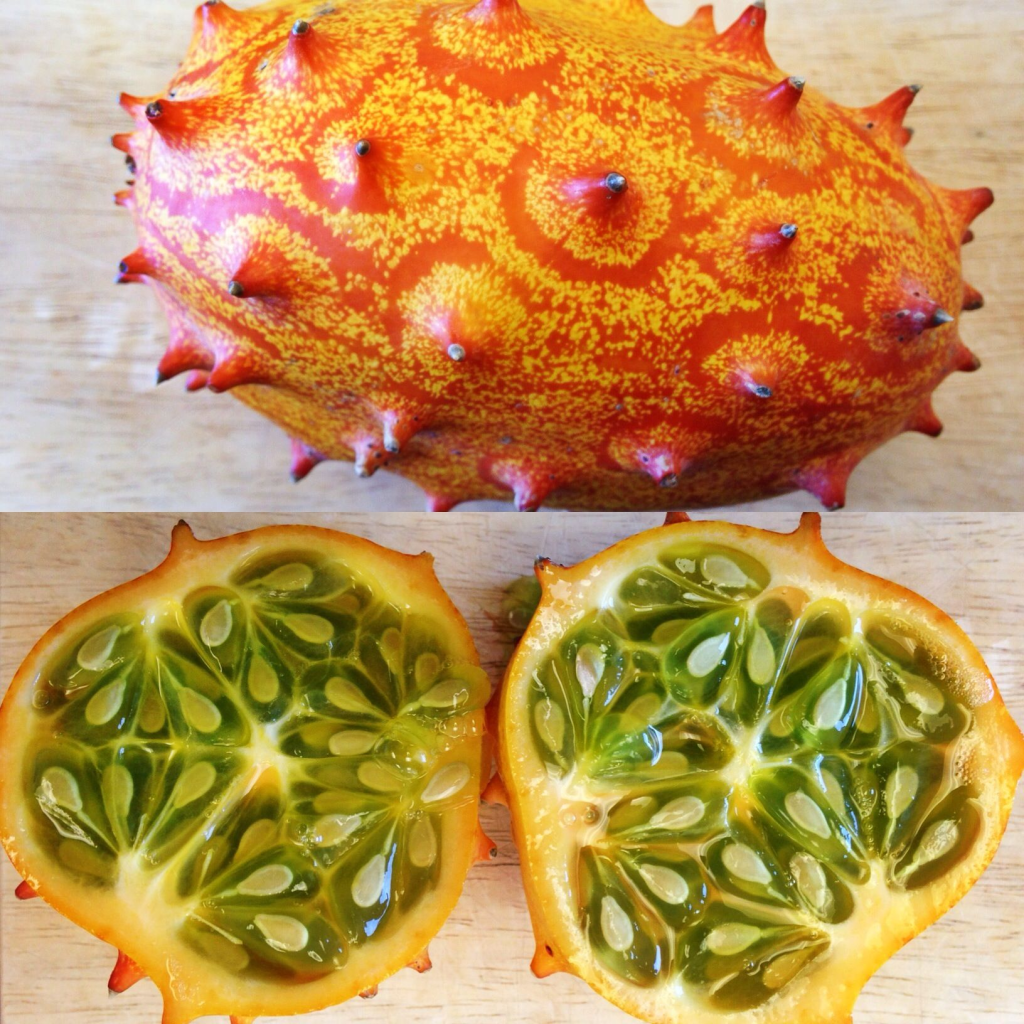 Kiwano Melon – Also known as a horned melon is a beautiful fruit; something I would rather place on my shelf for decorative purposes than eat. When cut open, it looks like a cross between a cucumber and a kiwi. It has a salty taste to it and a little tang; and has so many nutritional benefits such as antioxidants, weight loss, lowering blood sugar levels, helps red blood cell reproduction, improves mood, and much more. It’s a little on the pricy side depending on where you are but worth trying.